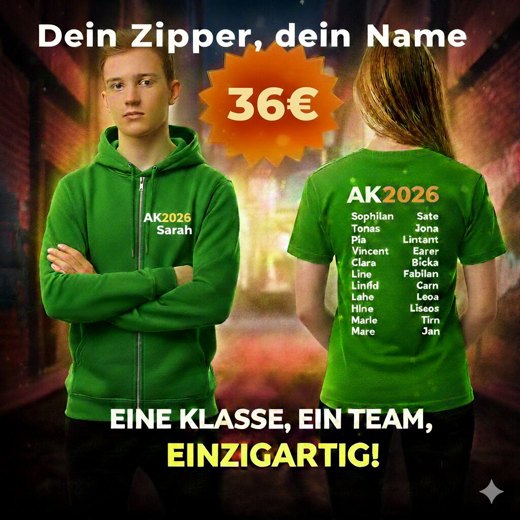 Individuelle Abschluss-Zipper: Dein Name in Premium-Qualität! Gestaltet eure Abschluss-Jacken mit Personalisierung für den einzigartigen Look eures Jahrgangs. Super Angebot: Robuster Zipper, weicher Stoff und hochwertiger Namensdruck – jetzt euren personalisierten Hoodie-Zipper zum Bestpreis sichern!